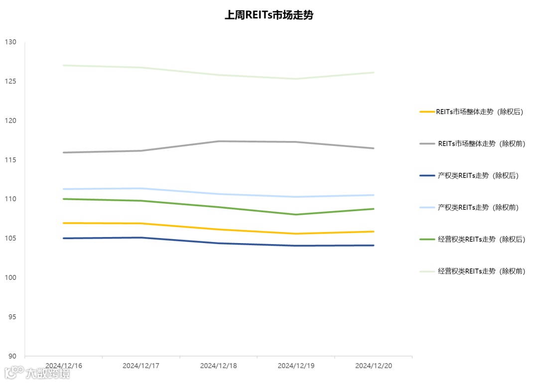 2024年12月16日至2024年12月20日,REITs市场整体平稳,走势情况如下图所示: