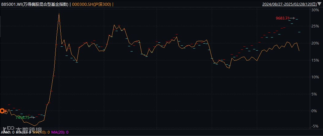 Wind数据显示,截至2月28日,今年以来万得偏股混合型基金指数涨幅为4.45%,而同期沪深300指数下跌1.14%。同期,全市场5230只主动权益类基金(只统计主代码)平均净值增长率为3.28%,也跑赢同期沪深300指数4.42个百分点。