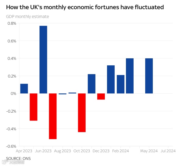 英国国家统计局(ONS)官方数据显示,尽管6月经济没有任何增长,但总的来说,英国经济在过去三个月内增长了0.6%。