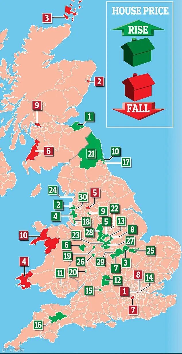 虽然英国房地产市场整体似乎陷入困境,但是部分地区房价却实现大幅逆增长👇
