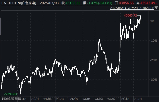 图:白色家电指数走势,数据来源:Wind,截至2025年3月3日