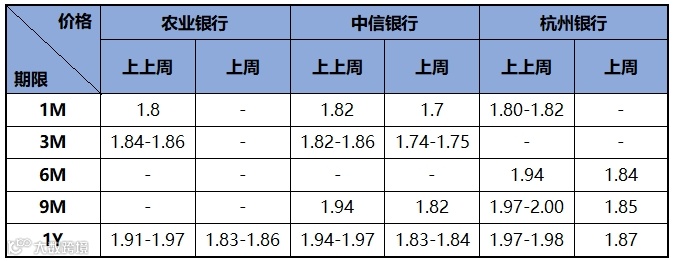 图表▼银行存单价格