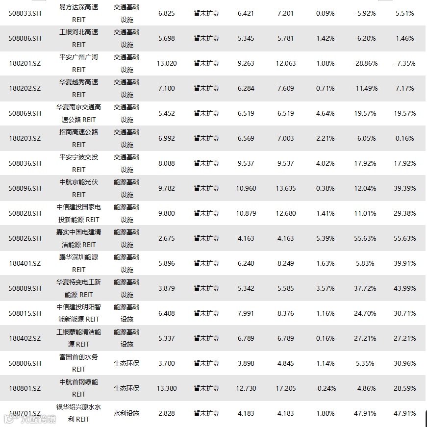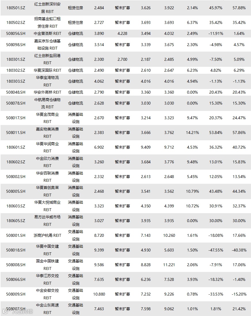 截至1月24日收盘,已上市60只REITs的收益率情况如下表所示: