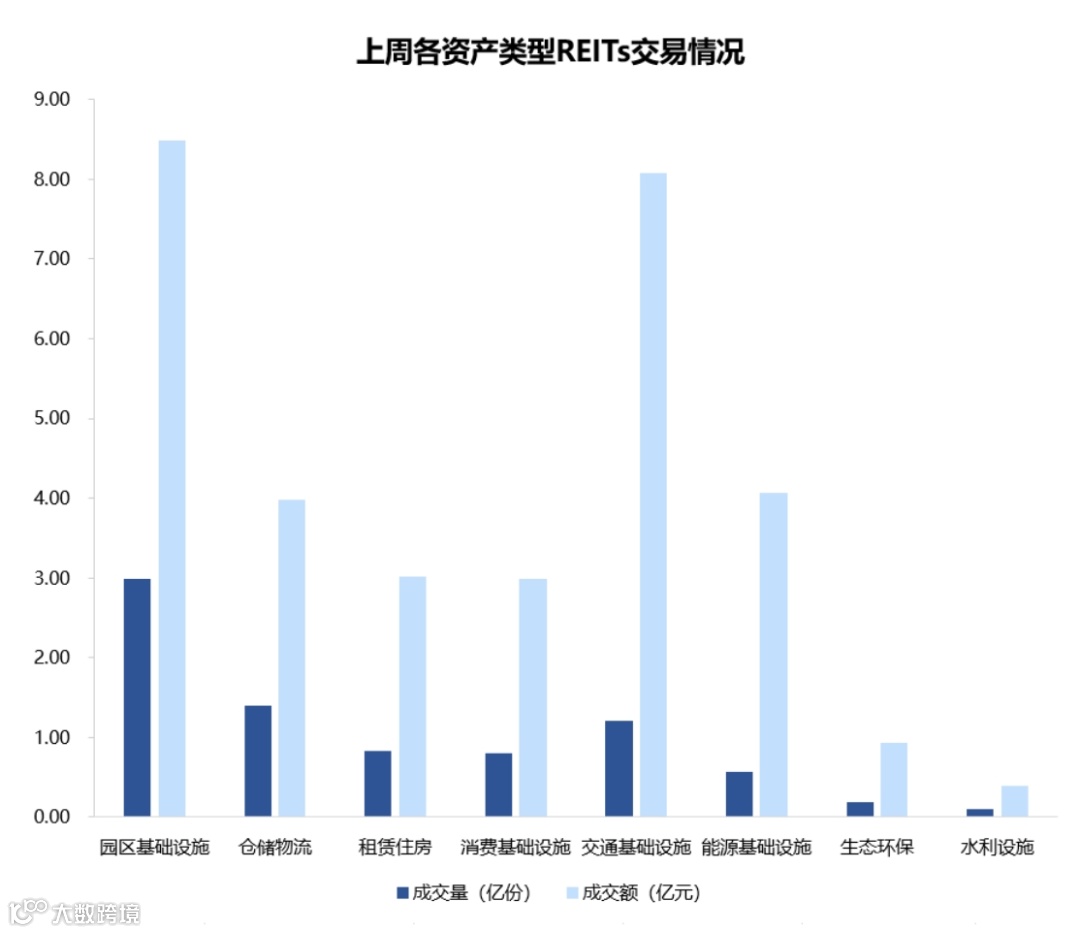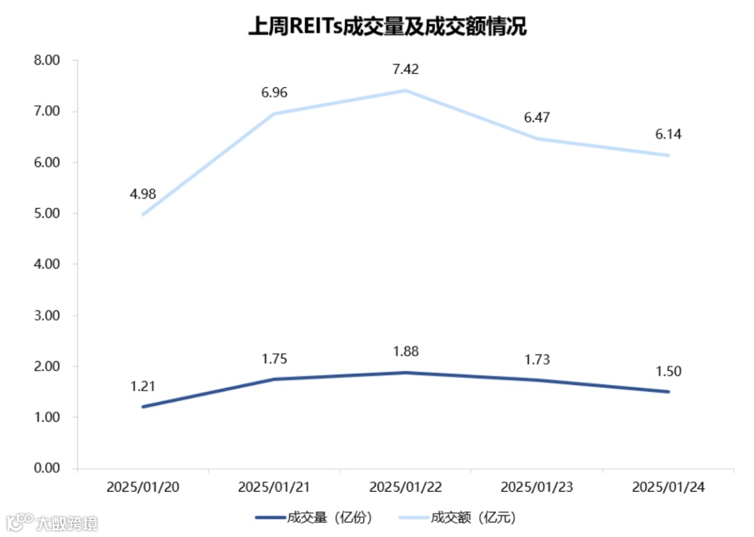 图表5▼上周REITs成交量及交额情况