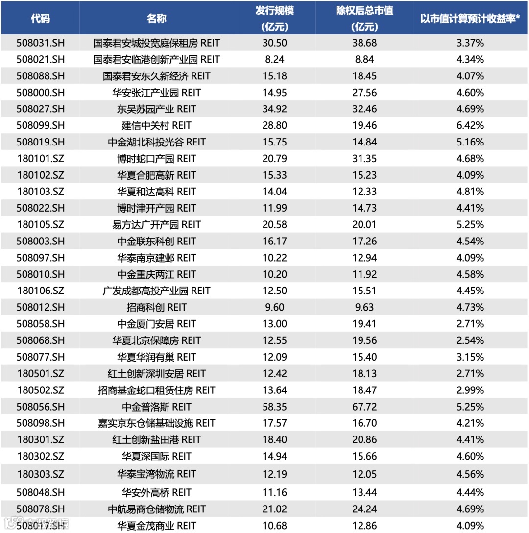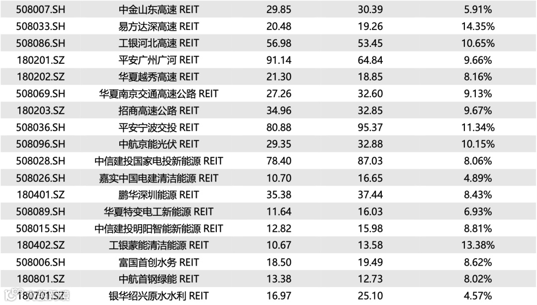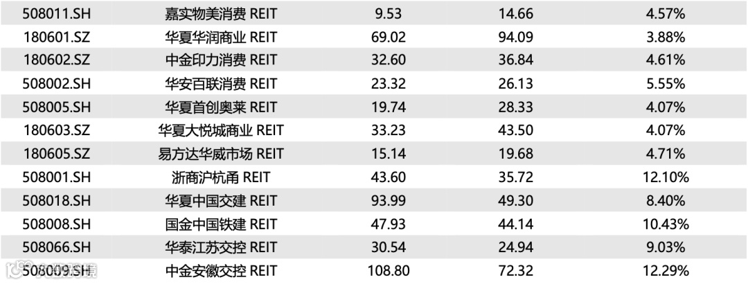 图表10▼已上市REITs收益率统计