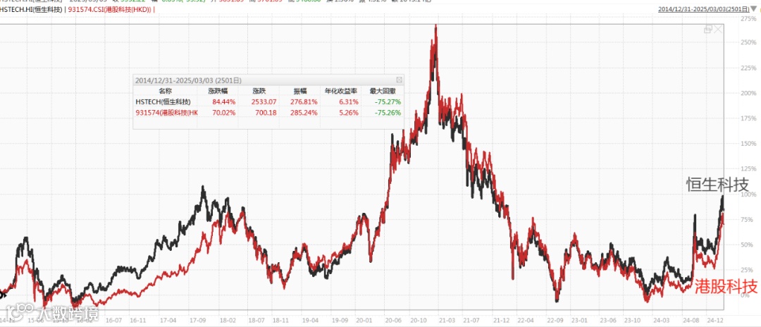 分析原因,可能是因为港股科技的七巨头含量占比更高。