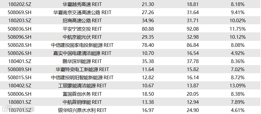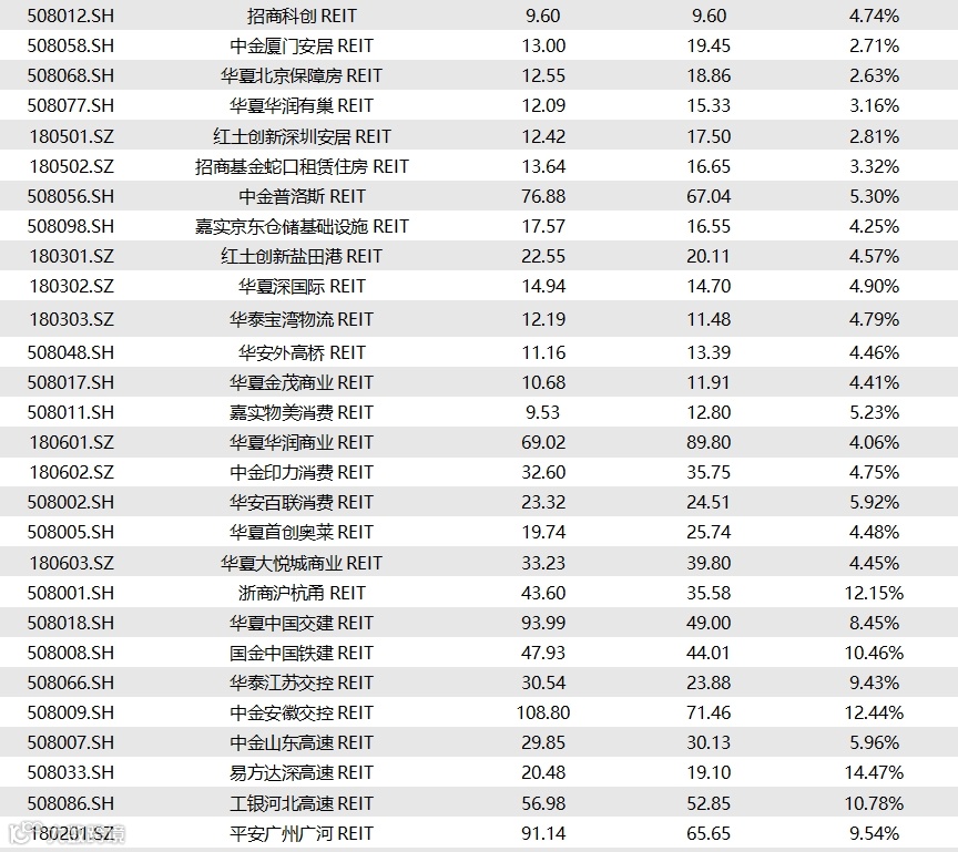 截至1月10日收盘,已上市58只REITs的收益率情况如下表所示: