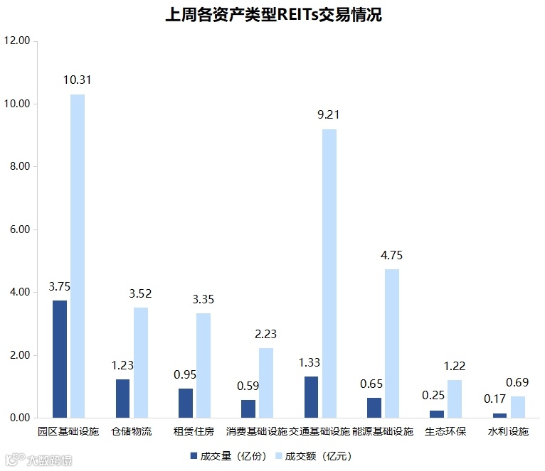 图表5▼上周REITs成交量及交额情况