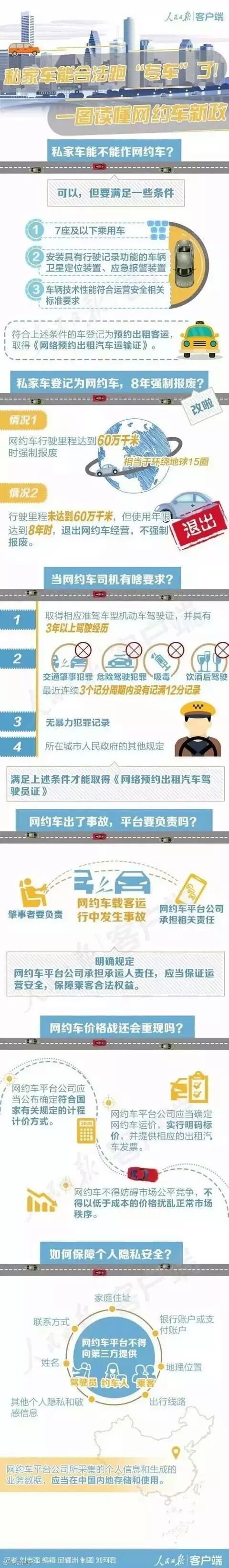 7月27日网约车新政出台,私家车可以成为网约车,从事专车运营,此外,政府还鼓励私人小客车合乘。