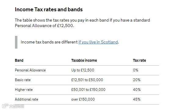2019年之后个税的起征档次上调,如果房东在英国没有其它收入,那么租金收入超过12500镑的部分才会被征税。具体比例就是上面表格右侧的百分比。