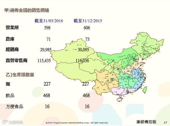 有财经分析师指出,康师傅之所以能够在方便面市场继续引领风骚,既离不开其布局全国、深入乡镇的生产和分销体系的支持,也与其不断创新、注重品牌升级战略关系颇深。截止目前,康师傅在全国建立了近600个营业所,11万直营销售网点,70个周转仓库,经销商超3万名,覆盖百万销售终端,渠道向下延伸到村镇一级,多年精耕的结果使得康师傅任何一款新品上市能在短时间内到达较偏远的终端。