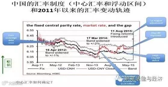 我现在先说中间价的确定,中间价怎么确定的?8.11汇改的核心就是商业银行以前一天的收盘价作参考,按给定规则给出当天汇率的报价,然后央行按给定公式决定当天的开盘价,允许汇率在中间价上下2%的范围内浮动在。当时央行可能认为人民币汇率高估了3%,于是第一天开盘时,让中间汇率贬值了1.9%。