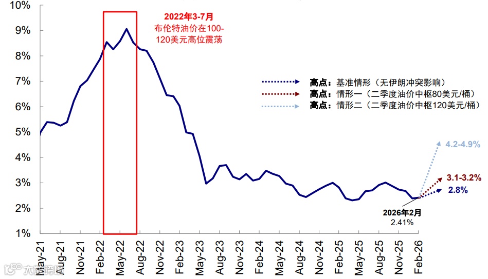 中金公司分析认为,100美元是关键“分水岭”。如果油价长期维持在这一高位,例如持续到三四季度仍在100-110美元,那高油价就会部分抵消因为去年下半年高基数导致今年下半年的通胀下行,使得下半年降息的概率也明显减少。