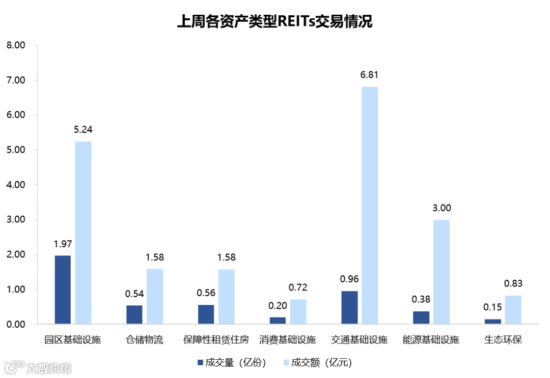 图表5▼上周REITs成交量及交额情况