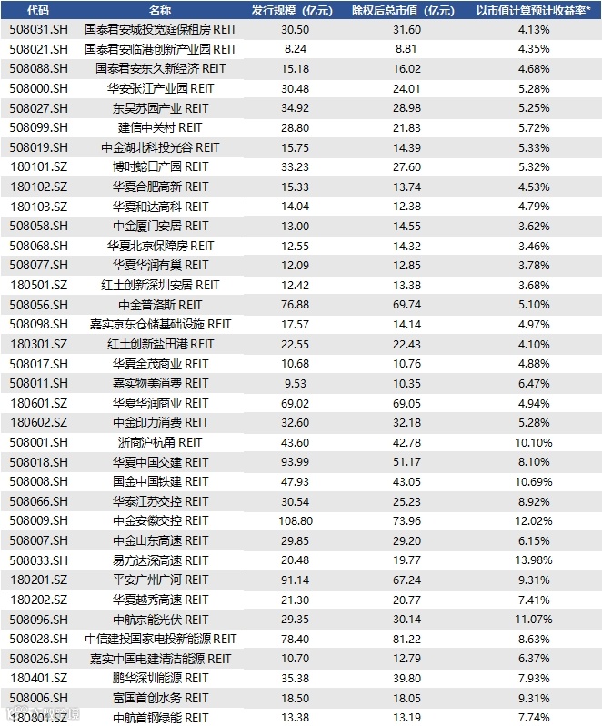 注1:以市值计算预期收益率=基金招募说明书公开披露基础设施项目2024年可供分配预测金额(年化)/截止2024年6月7日收盘基金市值。如未披露2024年可供分配预测金额的基金,以其招募说明书披露的最后一年可供分配预测金额为基准,谨供参考。