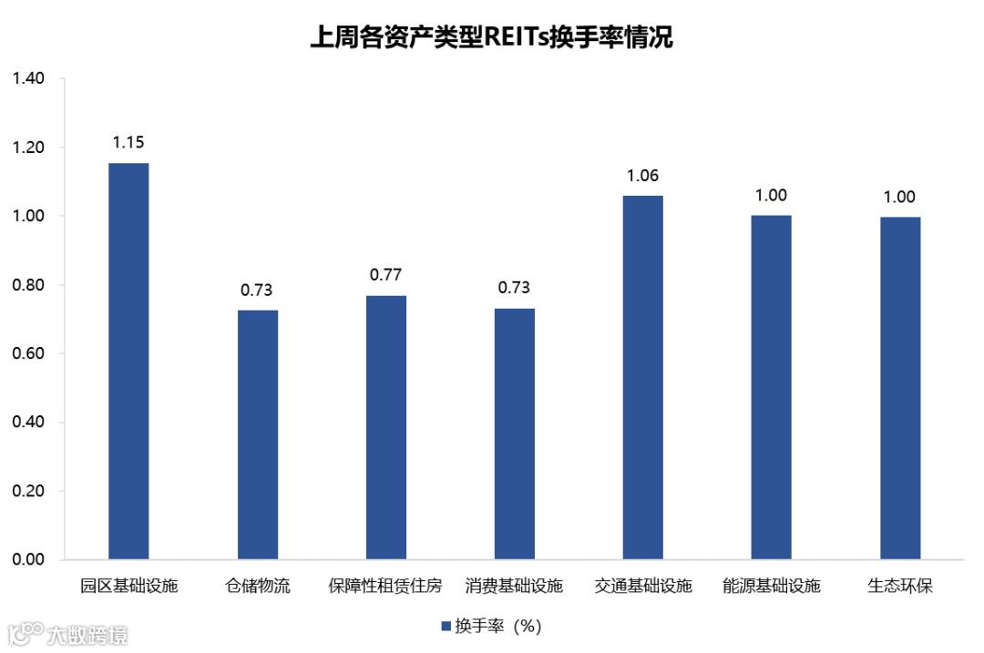 图表6▼上周REITs换手率情况
