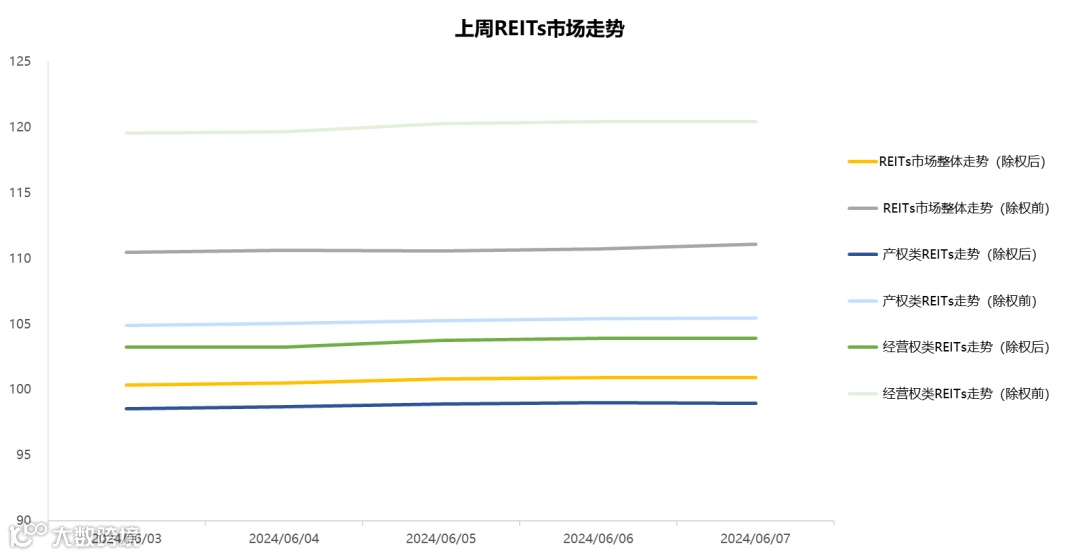 2024年6月3日至2024年6月7日,REITs市场整体平稳,走势情况如下图所示: