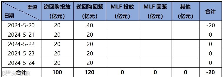 公开市场操作方面,上周全口径公开市场操作实现净回笼20亿元,其中央行公开市场累计投放100亿元逆回购,共到期120亿元逆回购。