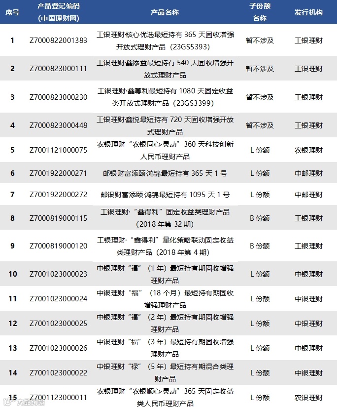 截至2023年12月底,全市场共有6家理财公司发行23只个人养老金理财产品。具体来看,工银理财8只、中银理财5只、农银理财4只、中邮理财3只、贝莱德建信理财1只、建信理财2只。