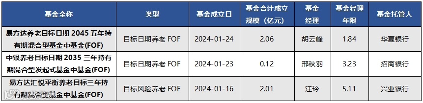 表1▼2024年1月养老目标基金上报、批复、发行成立情况