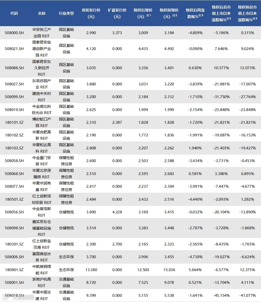 截至12月8日收盘,已上市29只REITs的收益率情况如下表所示: