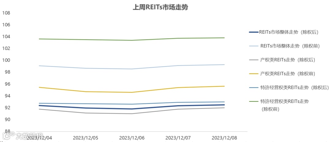 2023年12月4日至2023年12月8日,REITs市场呈整体平稳态势,走势情况如下图所示: