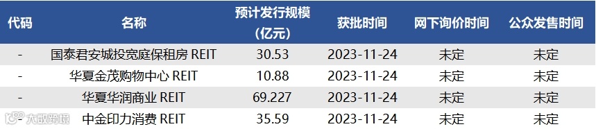 截至12月8日,已获批待上市REITs共有4只,情况如下表所示:
