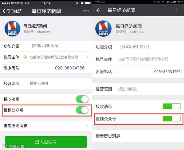 可以选择微信公众号置顶了。