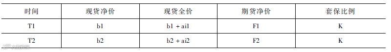 假设在T1时刻交易者手中已经持有现货,计划在未来某个时刻T2卖出。交易者面临现货价格下跌的风险,因此进行空头套保。交易者从T1时刻进行套保,并在T2时刻结束套保。各个时刻期货和现货的价格如表1所示: