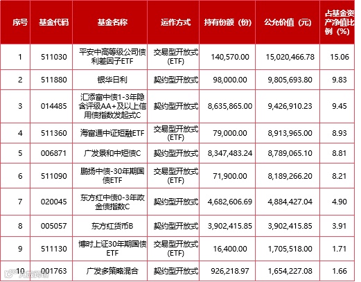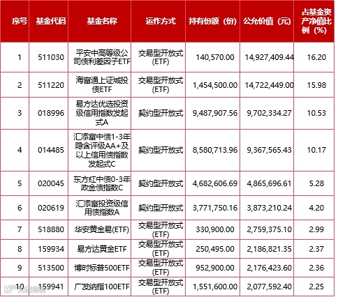 图:东方红颐和稳健养老两年FOF2025年三季度末前十大重仓基金