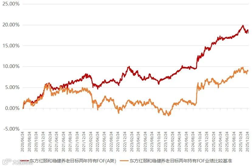 图:东方红颐和稳健养老两年FOF(A类)净值增长率与同期业绩比较基准收益率的历史走势对比图