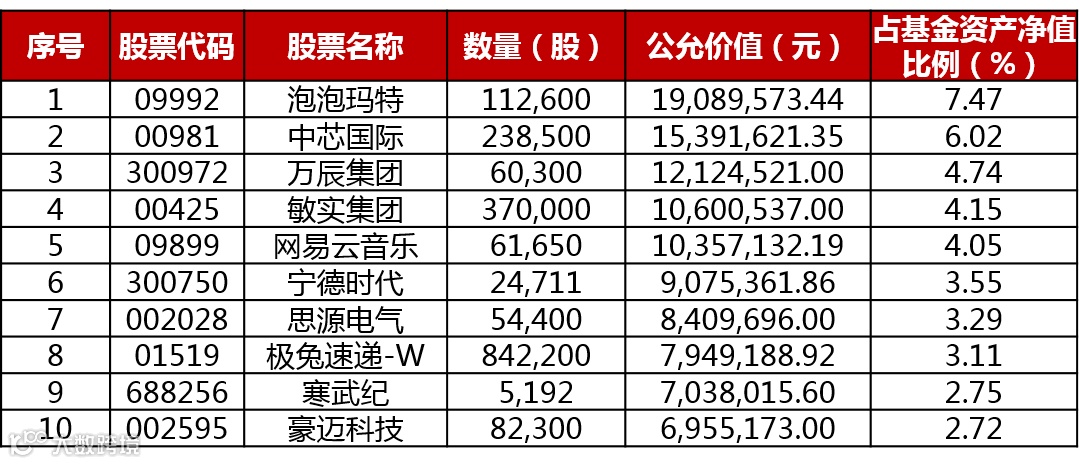 注:持仓数据来自产品定期报告,不代表任何形式的个股推荐。历史持仓仅代表既往投资,不代表未来投资情况。
