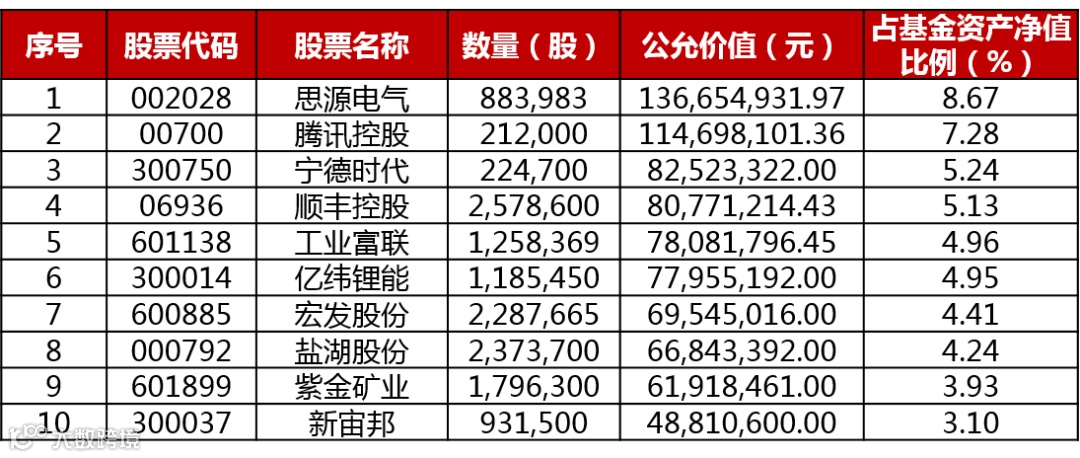 前十大重仓股