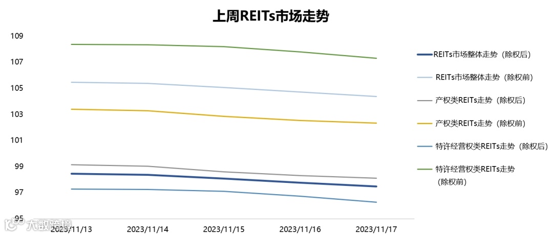 2023年11月13日至2023年11月17日,REITs市场呈整体下降态势,走势情况如下图所示: