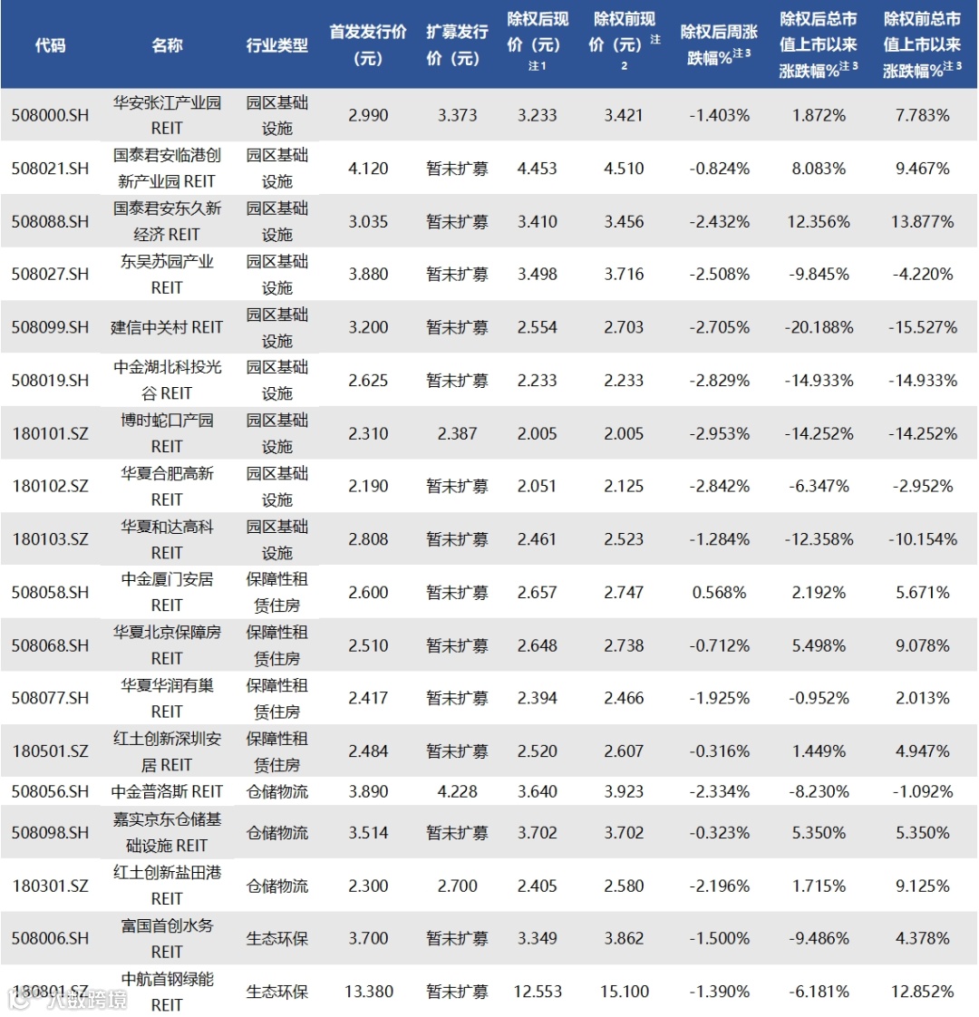 截至11月17日收盘,已上市29只REITs的收益率情况如下表所示: