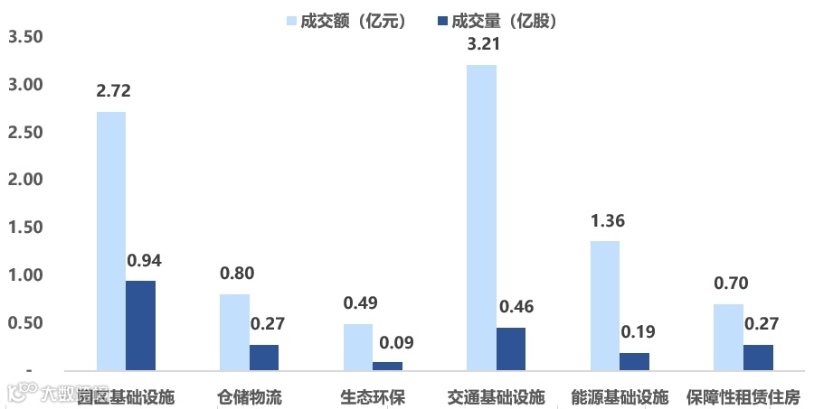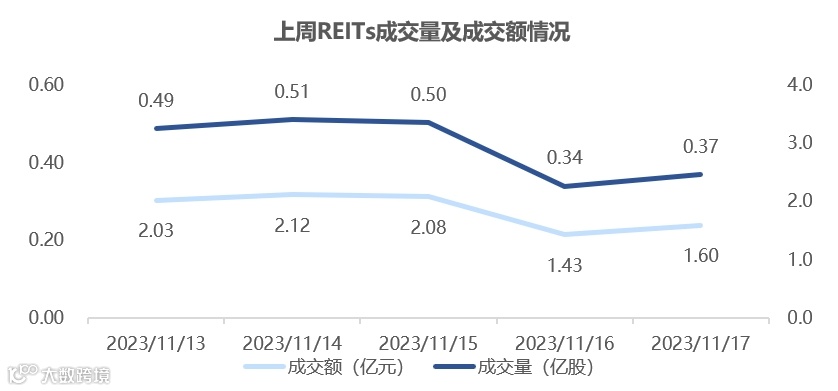 图表5▼上周REITs成交量及交额情况