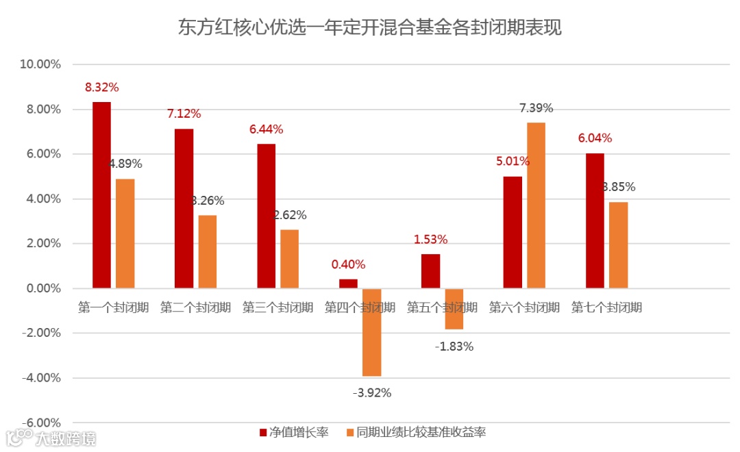 作为度过七个封闭期的“固收+”基金,东方红核心优选定开混合基金充分展现了其稳健姿态,每个封闭期都为投资者提供了不错的正收益。