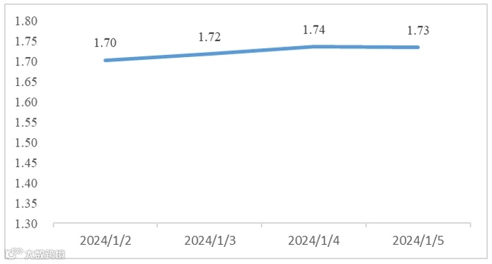 公开市场操作方面,市场资金价格波动较小,隔夜加权价格在1.70-1.75区间波动,整体资金面均衡偏松。截至1月5日,隔夜加权1.73%,早盘押信用2.3%-2.5%;7d加权2.18 %,早盘押信用2.4%-2.75%。