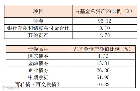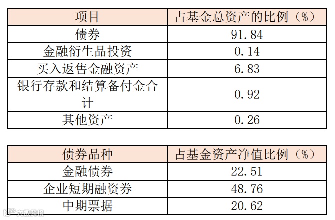 永赢安盈90天滚动重点关注中短期限、AA+及以上中高等级信用债,截至二季度末,本基金资产组合情况如下: