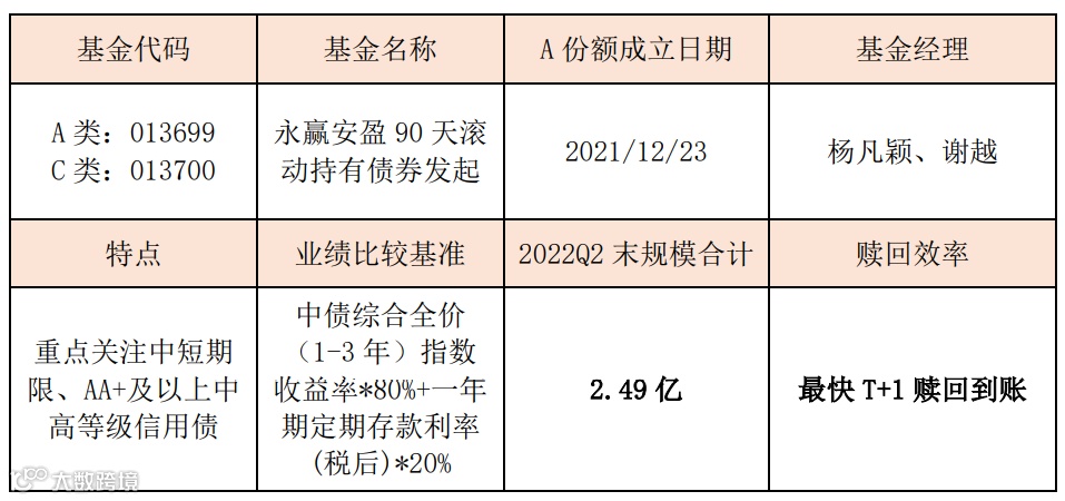 永赢安盈90天滚动持有债券发起