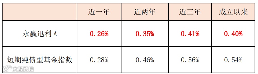 持有体验优:A份额成立以来年化波动率0.40%,同期短期纯债型基金指数的年化波动为0.54%。②
