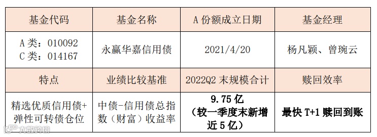永赢华嘉信用债备受市场青睐,截至2022年二季度末,规模合计近10亿元,较一季度末规模翻倍,同时也是发行规模的3倍+!③