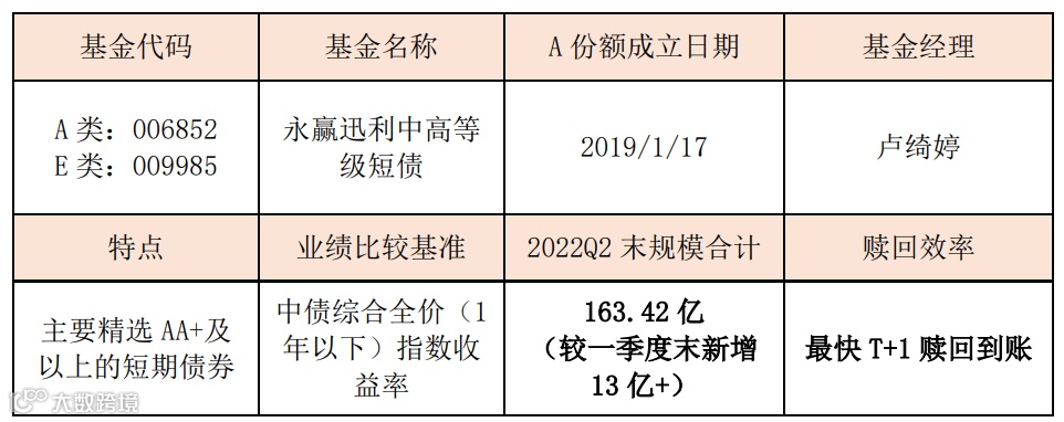 永赢迅利短债备受市场青睐,截至2022年二季度末,规模合计超163亿元(较一季度末新增13亿+),是发行规模的80倍+!③