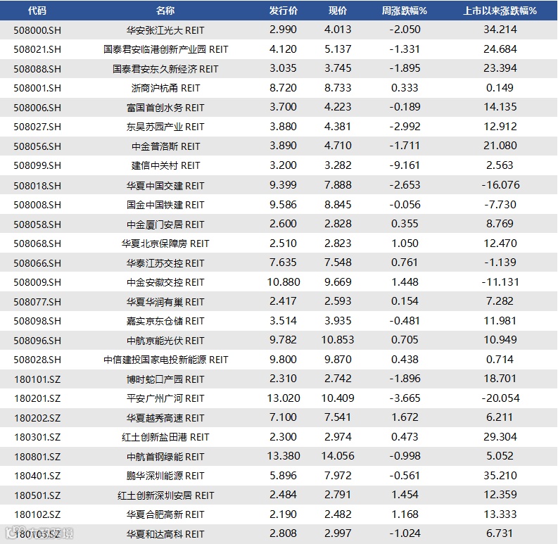 截至4月21日收盘,已上市27只REITs的收益率情况如下表所示: