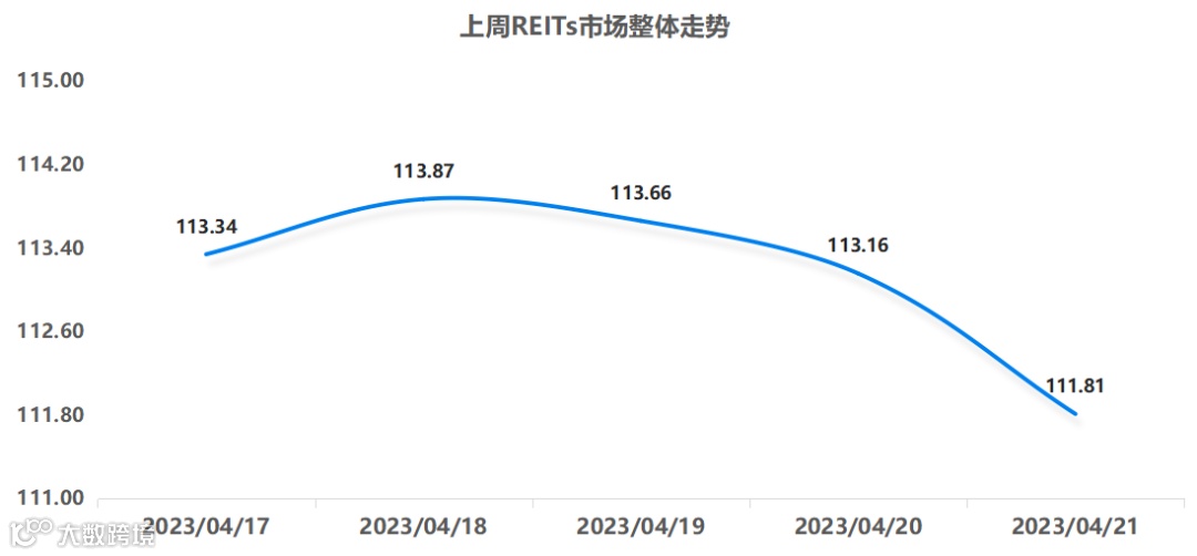 上周REITs市场小幅上升后下跌,一周走势情况如下图所示:
