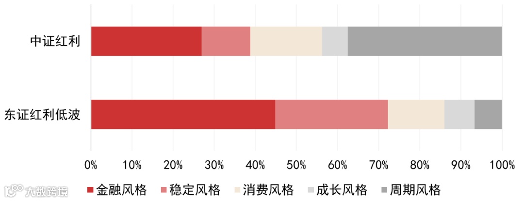 更重要的是,预期股息率指标有助于优选持有期内较大概率保持高分红的公司,而将短期脉冲式分红的公司排除在外。典型的比如周期股在周期顶部往往会加大分红,但是在后续很难保持。从风格构成来看,东证红利低波指数在周期风格上的权重约为7%,远低于同期中证红利指数的37%。