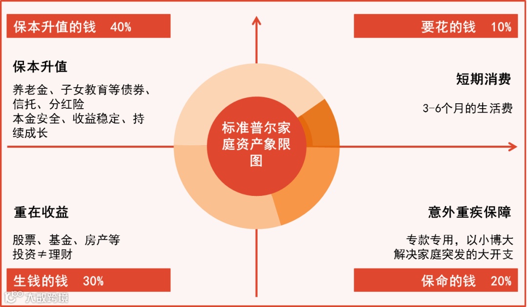 合理的资产配置结构是帮助家庭资产稳健增长的有力助手。标准普尔家庭资产象限图是业内广泛公认的家庭资产配置参考方案。