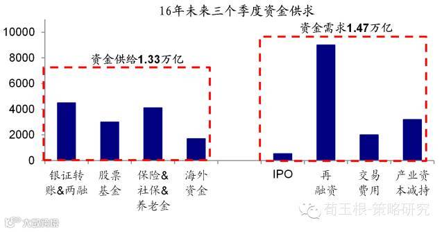 16年未来三个季度资金供给预计13300亿,资金需求14700亿,资金供需整体紧平衡,未来大概率震荡市,要做好打运动战的准备。