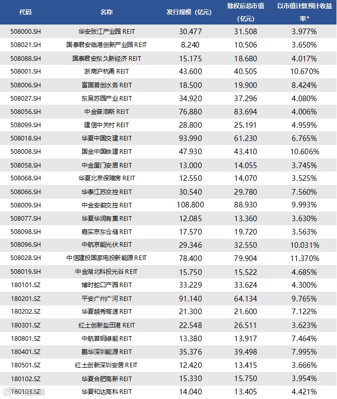截至8月18日收盘,已上市28只REITs的收益率情况如下表所示: