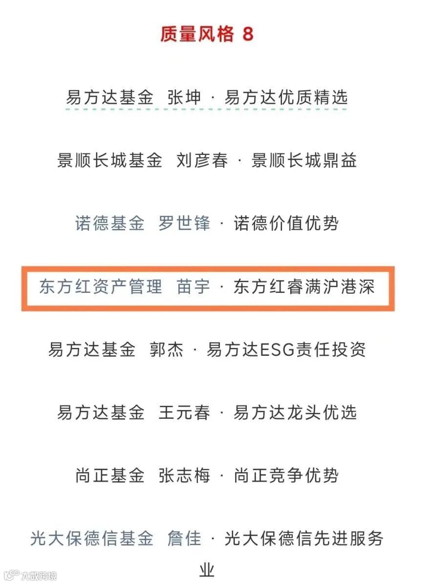 每年我们也会发布一个Top 100基金经理榜单,其中就有我们认为优秀的质量派基金经理。东方红资产管理的苗宇,是连续三年入选我们榜单的基金经理。早在2022年的时候,我们就把还在广发基金的苗宇纳入到我们的Top 100基金经理榜单,并且一直持续至今。